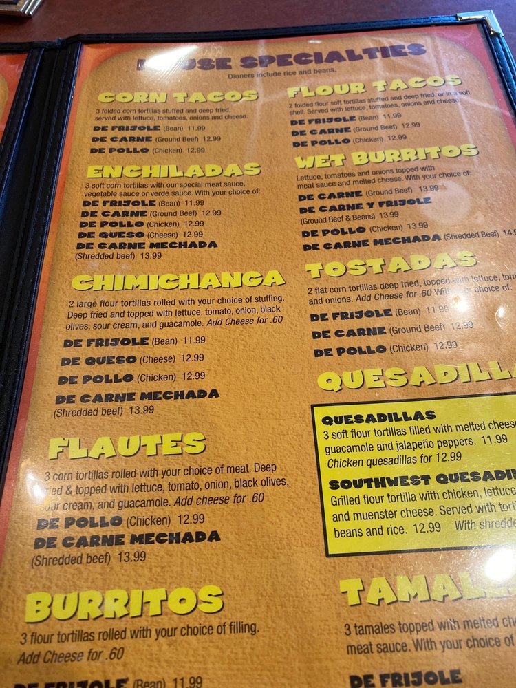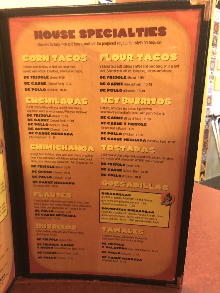 Choose from bean and meat, all meat or chicken. All lunch specials include rice and beans.